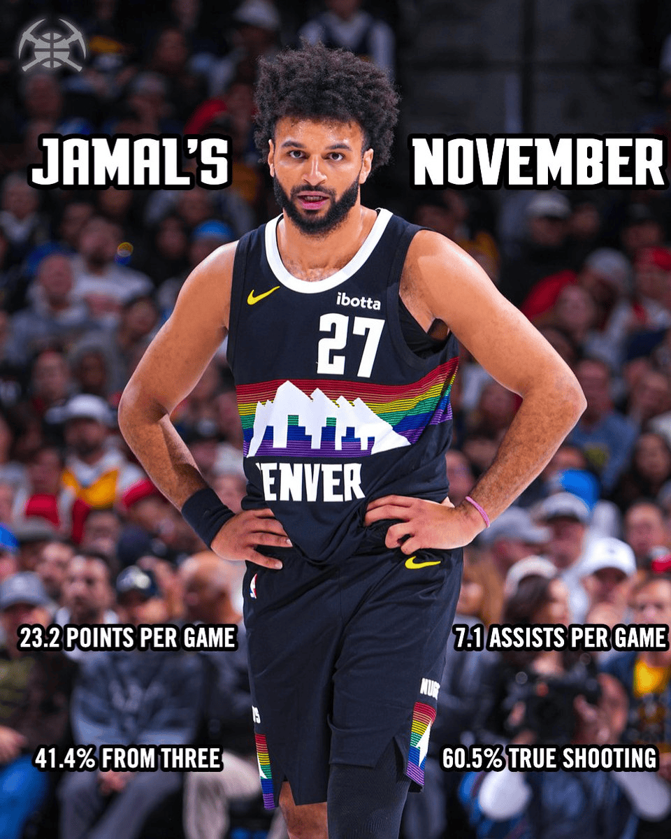 [流言板]掘金官方:默里11月場(chǎng)均23.2分7.1助攻,真實(shí)命中率60.5%