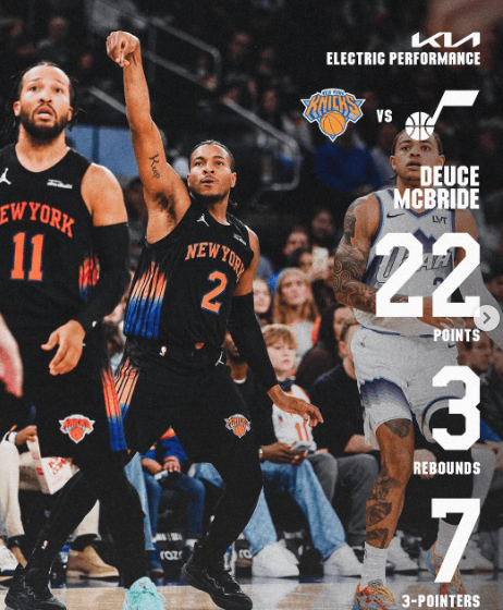 虎撲12月06日訊 尼克斯官方更新ins,曬邁爾斯-麥克布萊德數據海報。官方更新