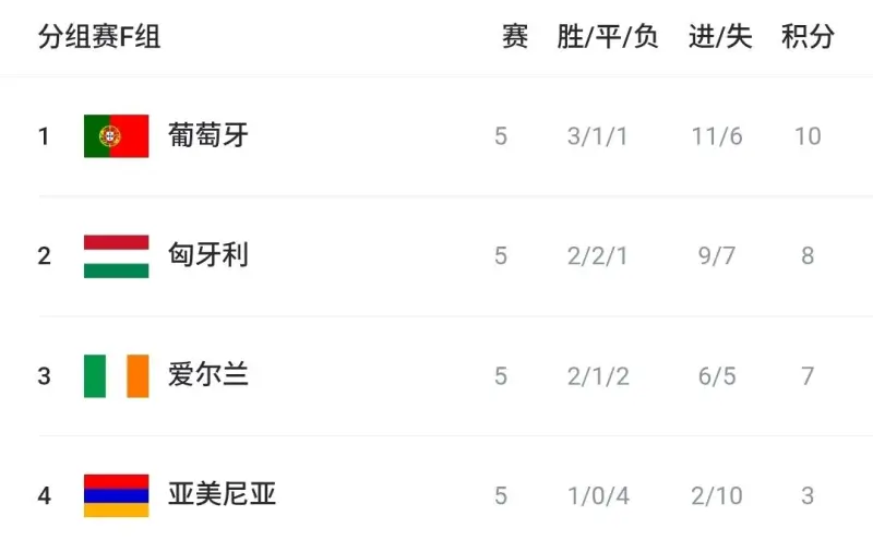 葡萄牙若平局或輸球,也有晉級可能,但需要看匈牙利和愛(ài)爾蘭的賽果。