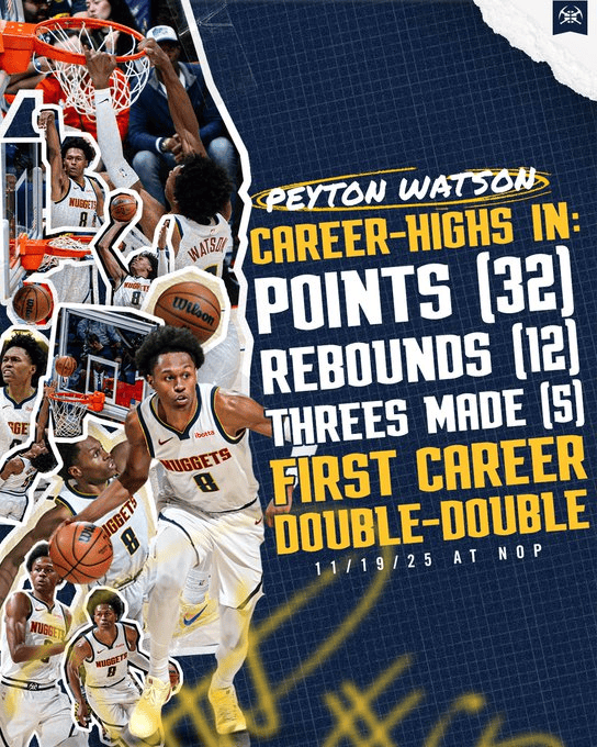 [流言板]掘金官方發(fā)布沃特森數據海報:32分12板5三分均為生涯新高!板掘布沃由虎撲籃球資訊 發(fā)表在籃球資訊 https://bbs.hupu.com/502