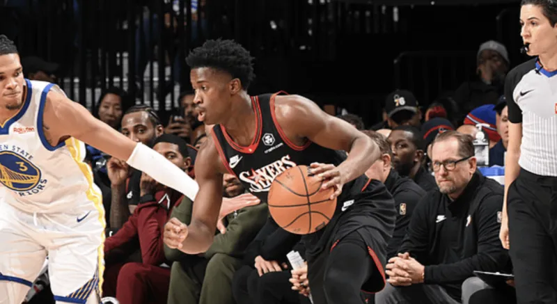 在比賽最后時(shí)刻76人落后1分,馬克西中投三不沾,埃奇庫姆籃下補籃命中。