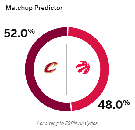 賽前,測明美媒ESPN預測本場(chǎng)比賽,日騎騎士勝率52.0%稍占上風(fēng),士v賽騎士勝猛龍勝率為48.0%。占上? ?
