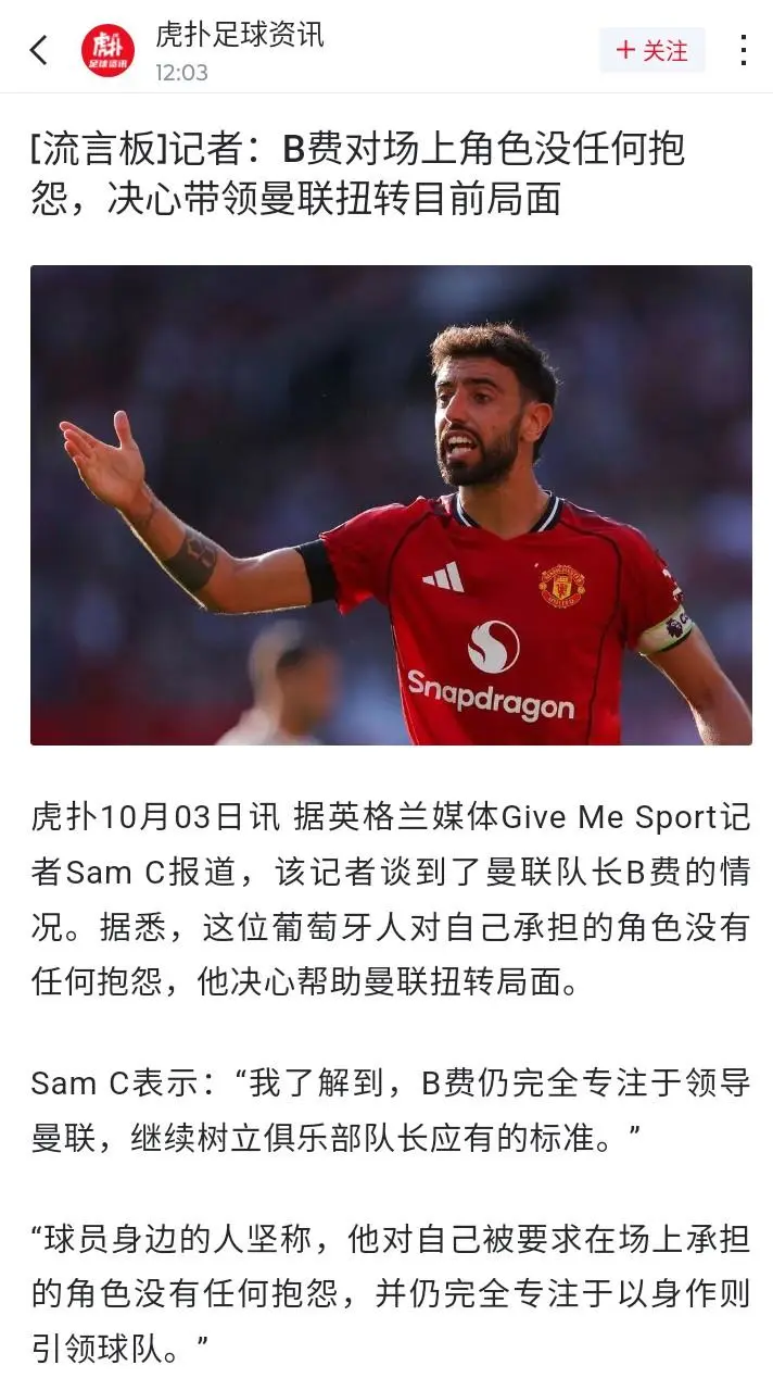 《去年只有三十球,說(shuō)明b費老位置已經(jīng)打不了》