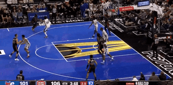 第四節比賽,爾高勒維爾高弧度頂投三分再次命中,弧度還剩3分鐘活塞領(lǐng)先8分。頂投