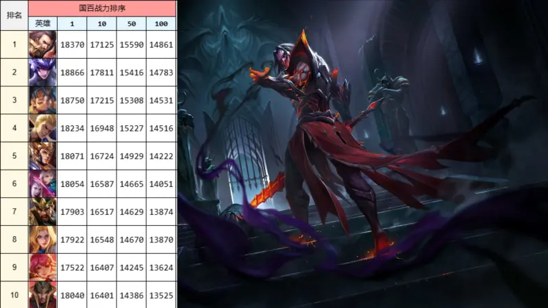 國百戰力排名前十的,都算相對強勢的英雄,最起碼因為他們的上限高才能打出這么高的戰力。