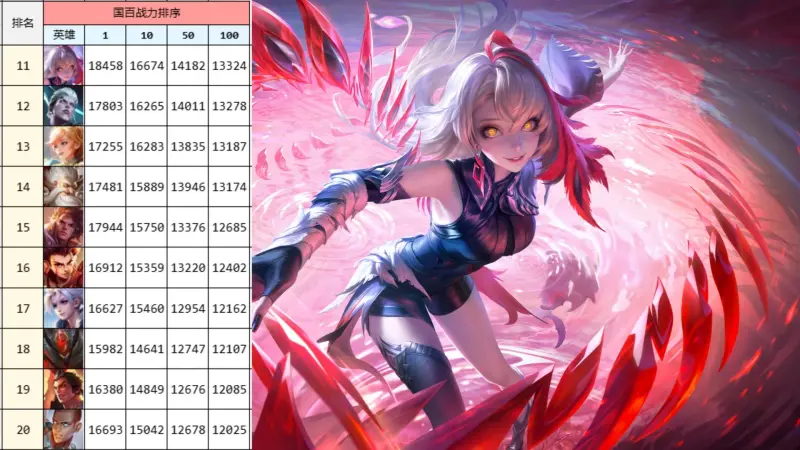 數據取自雙系統四大區平均戰力,以國百戰力排序,每日波動(dòng)僅供參考。