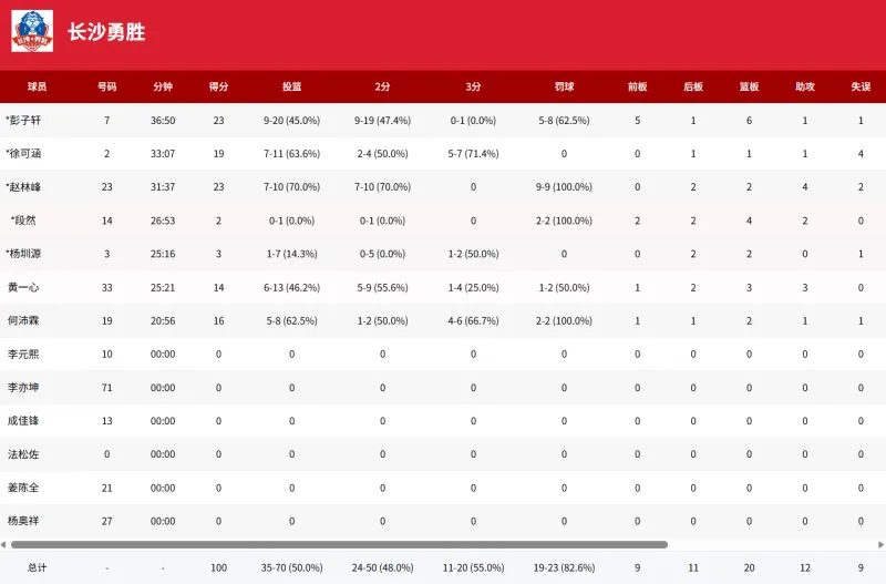 長(cháng)沙勇勝:彭子軒23分、男籃趙林峰23分、全國徐可涵19分