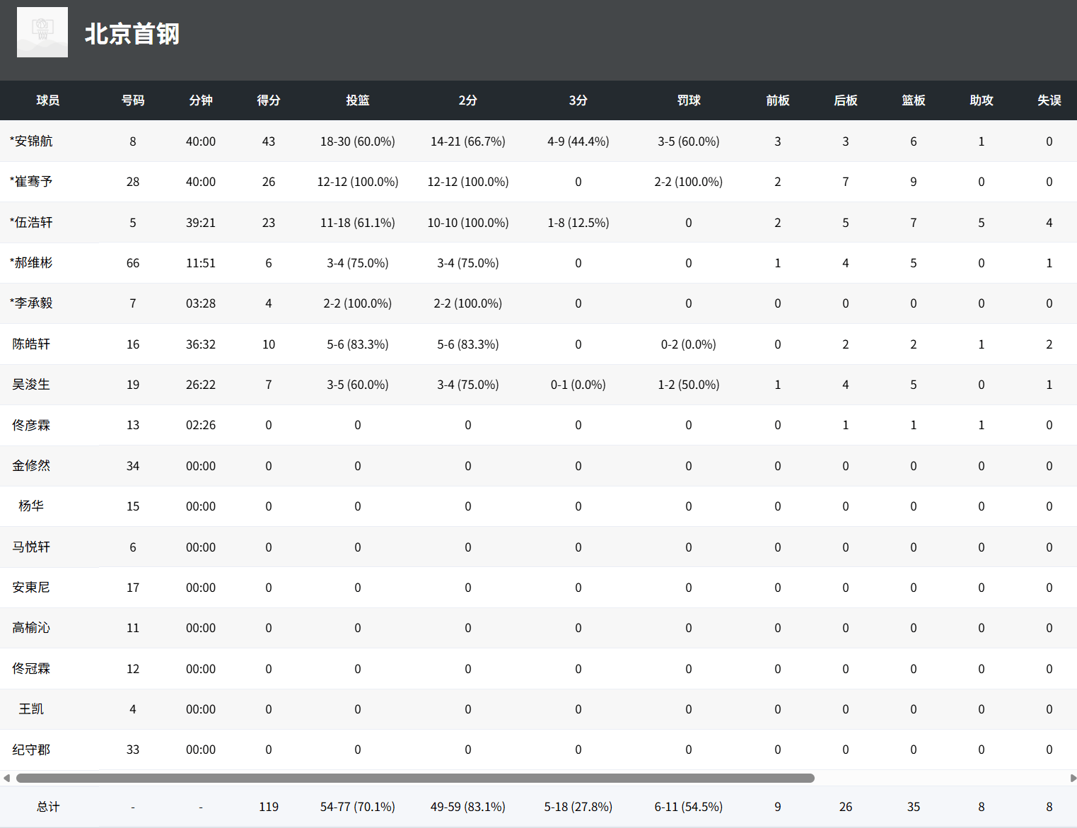 北京U19男籃:安錦航43分、錦航京崔騫予26分、分北伍浩軒23分