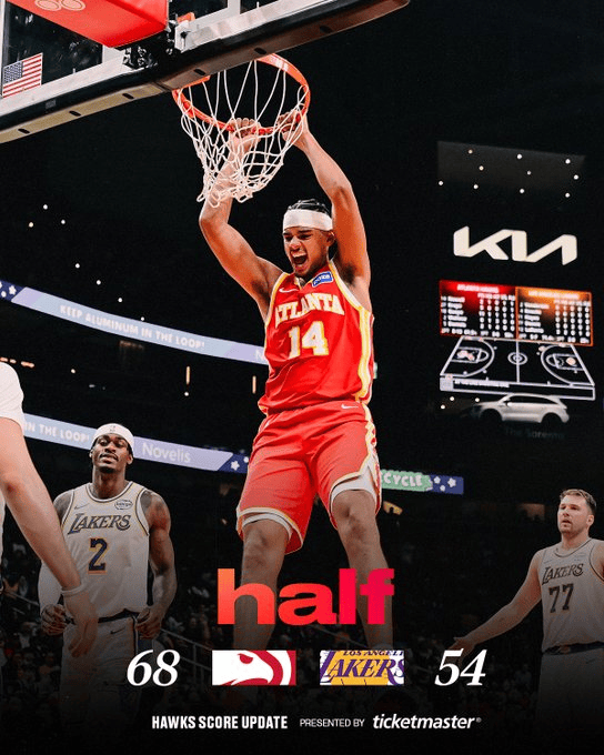 [流言板]半場(chǎng)14分領(lǐng)先湖人!老鷹官方曬半場(chǎng)海報:阿薩