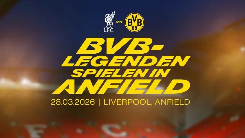 虎撲11月19日訊 多特蒙德俱樂(lè )部官方宣布,俱樂(lè )部傳奇隊將于2026年3月28日在利物浦安菲爾德球場(chǎng)對陣利物浦傳奇隊。特官本場(chǎng)比賽的年月全部收益將用于支持多特蒙德基金會(huì )和利物浦基金會(huì )所推動(dòng)的社會(huì )公益項目。