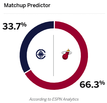 賽前,日比美媒ESPN預測本場(chǎng)比賽,賽熱熱火勝率66.3%,火勝快船勝率33.7%。