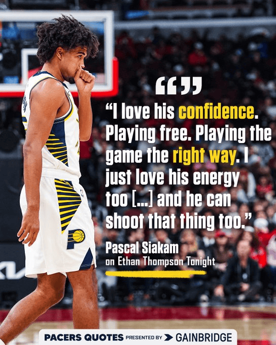 板步步行者官方推特報道:伊桑-湯普森今晚打出了精彩表現??