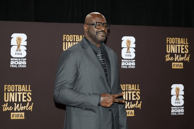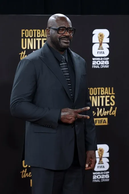 虎撲12月05日訊 2026 年世界杯抽簽儀式即將進(jìn)行,一眾嘉賓陸續走上紅毯,嘉賓籃球巨星奧尼爾率先亮相。到場(chǎng)