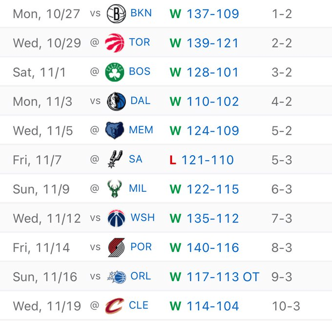 “火箭正在統治聯(lián)盟,流言聯(lián)盟過(guò)去11場(chǎng)贏(yíng)下其中的箭正10場(chǎng)!”