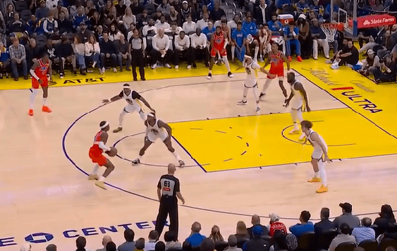 NBA常規賽,勇士對陣雷霆的后撤比賽正在進(jìn)行中。