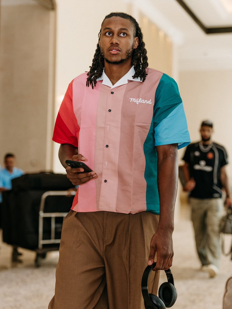 虎撲10月04日訊 今日,76人社媒曬出季前賽賽前球員們身著(zhù)時(shí)尚服飾步入球館的員們瞬間,凱利-烏布雷等球員出鏡。服飾