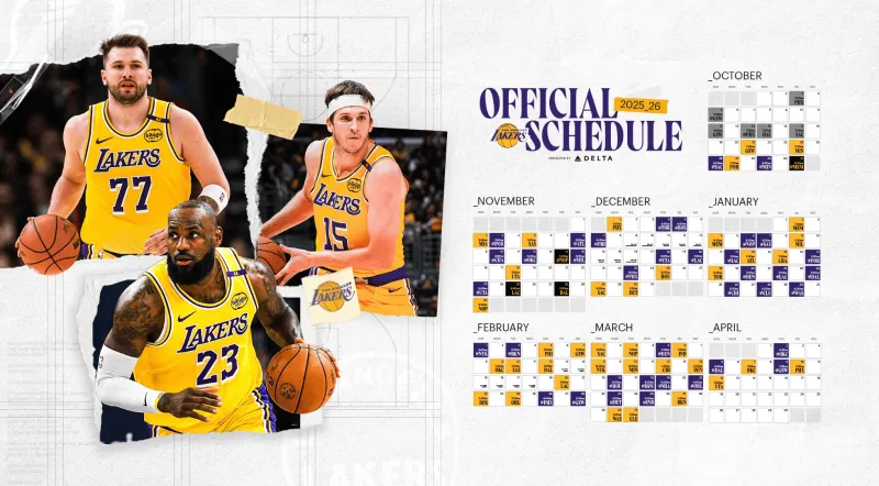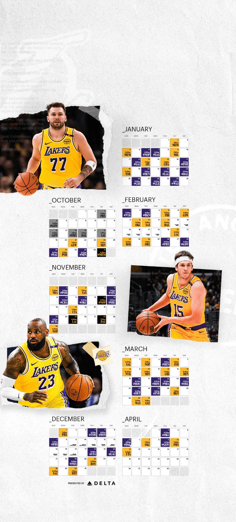 虎撲09月27日訊 湖人今日官方更新X,曬出了橫版和豎版的程壁湖人新賽季賽程。