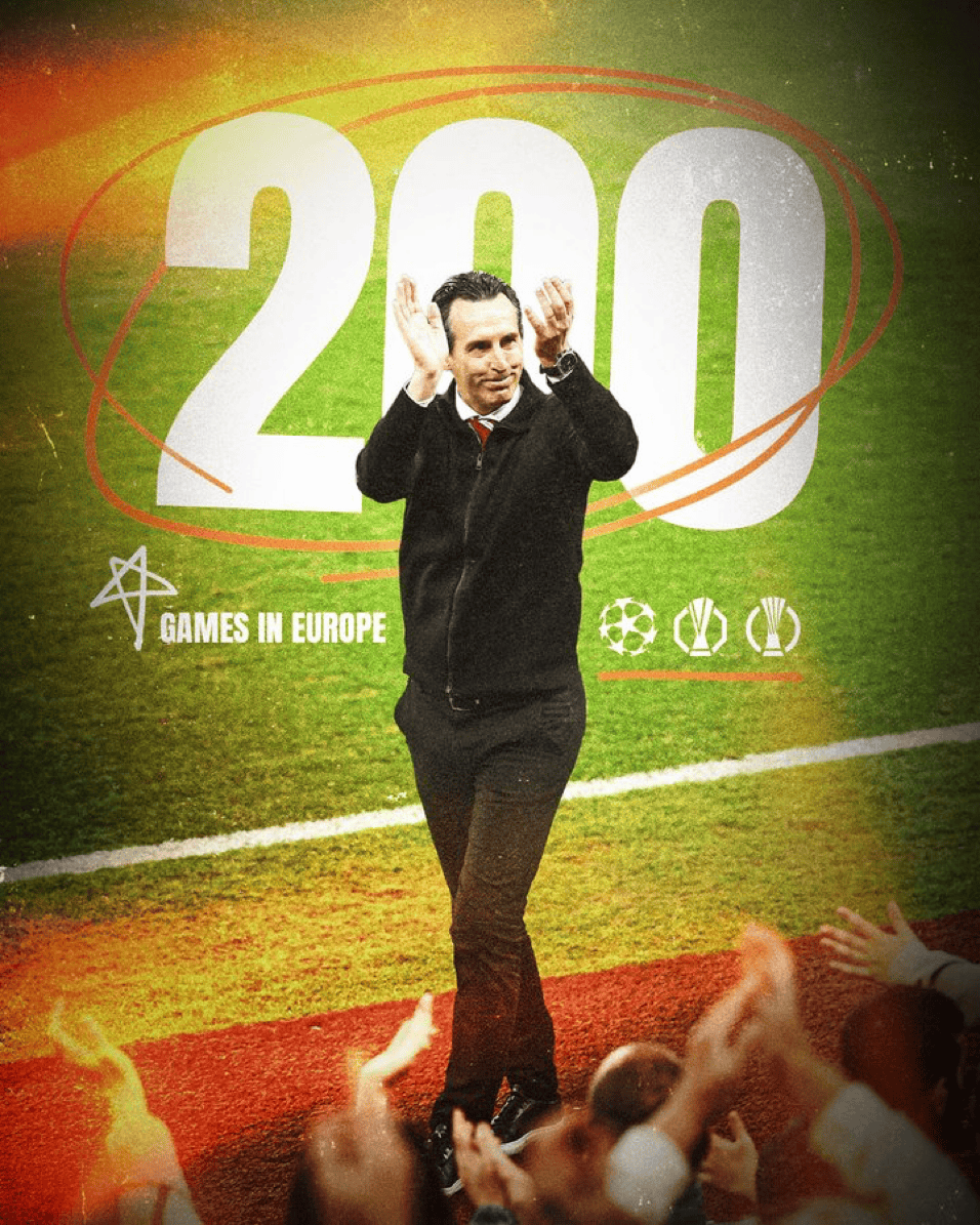 這是戰執埃梅里執教生涯的第200場(chǎng)歐戰賽事,維拉官方發(fā)布海報紀念了這一里程碑時(shí)刻。教生