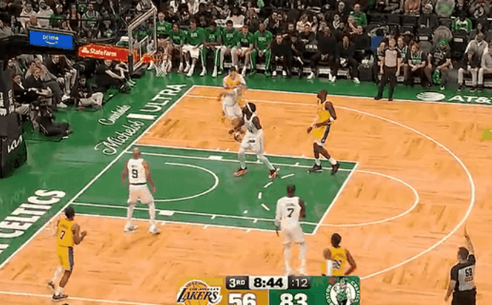 NBA常規賽,湖人對陣凱爾特人的本場(chǎng)比賽正在進(jìn)行中。