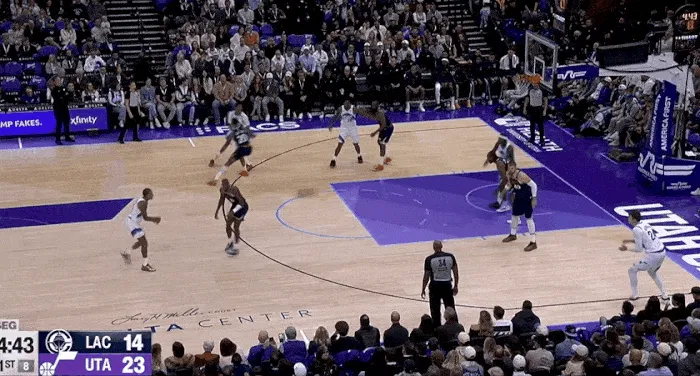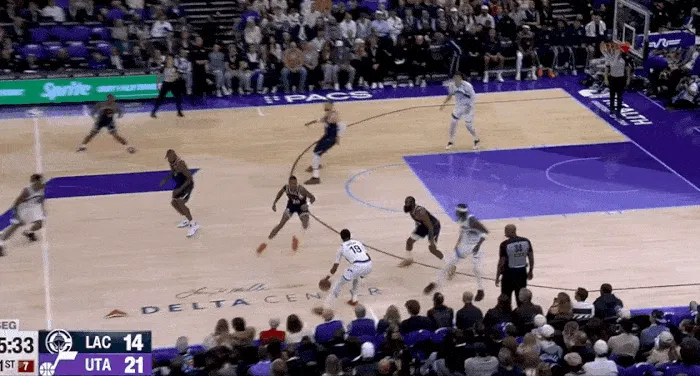 NBA常規賽,爵士對陣快船的利直比賽正在進(jìn)行中。