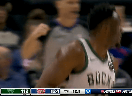 字母哥哥搶斷反擊雙手暴扣,上場(chǎng)4分鐘2中2拿7分2籃板1搶斷