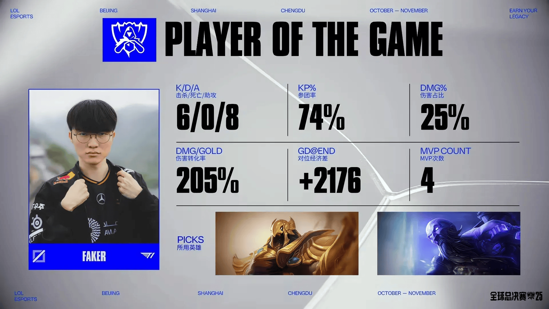虎撲10月25日訊 在剛剛結束的S15瑞士輪的比賽中,Faker瑞茲砍下6/0/8的次局戰績(jì),拿下T1對陣MKOI次局MVP