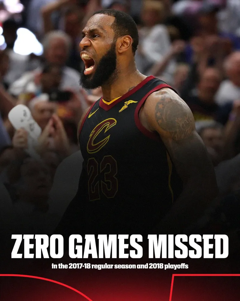 更加難能可貴的是,詹姆斯17-18賽季保持常規賽82場(chǎng)和季后賽的全勤。