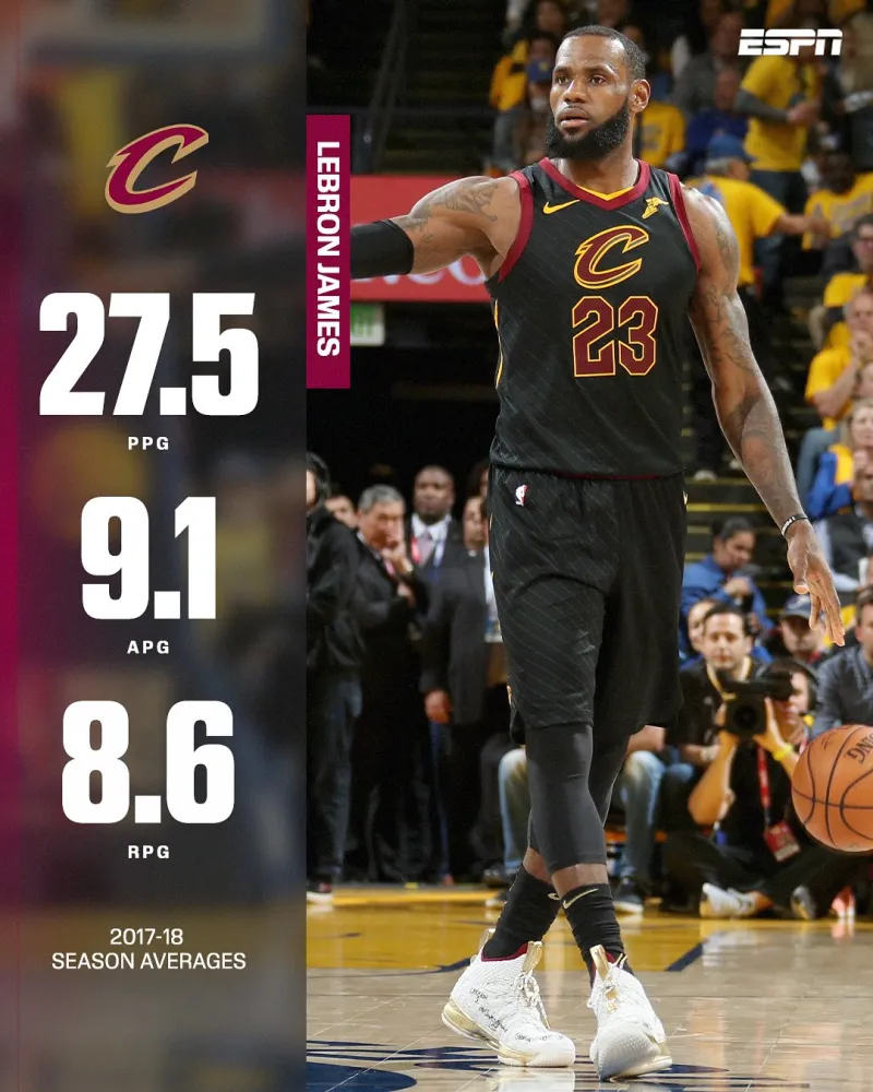 虎撲12月10日訊 今日,據Nba on espn INS報道。勒布朗-詹姆斯在2017-18賽季的表現截然不同?????。