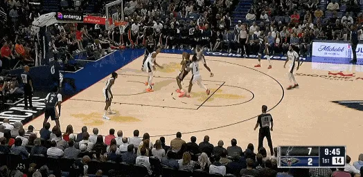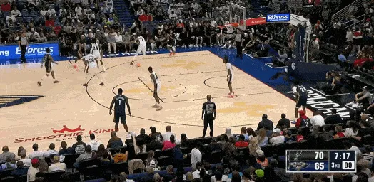 薩迪克-貝突破至內線(xiàn),文班從側翼殺出,一個(gè)墊步,直接釘板,隨后,馬刺推起快攻。