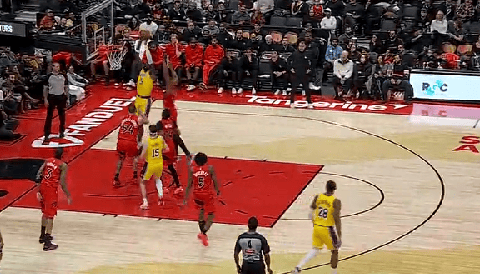 NBA常規賽,湖人客場(chǎng)對陣猛龍的內線(xiàn)比賽正在進(jìn)行中。