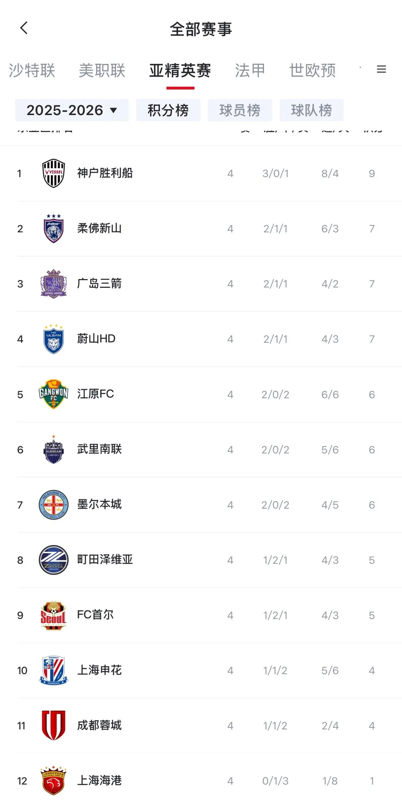 亞精英賽小組賽4輪戰罷,強亞中超三強上海海港、精英居末上海申花和成都蓉城均戰績(jì)不佳。上海申花和成都蓉城均是1勝1平2負,上海申花以1粒凈勝球的優(yōu)勢占據小組倒數第三,成都蓉城只能位列倒數第二。