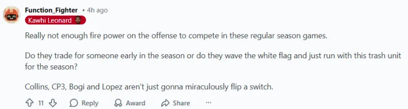 -好吧,這賽季徹底撲街了!球隊毫無(wú)默契,而泰倫·盧看起來(lái)也茫然無(wú)措