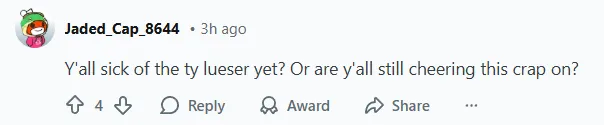 -你們都厭倦泰倫·盧了嗎?還是你們還在為這個(gè)垃圾歡呼?