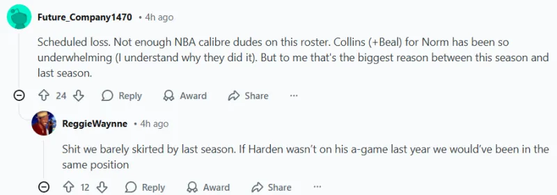 -(12贊)TMD,上賽季我們勉強逃過(guò)一劫。如果不是哈登去年表現出色,我們現在的處境也會(huì )如此