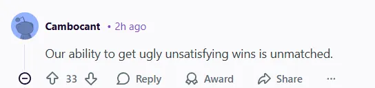 -(33贊)我們獲得丑陋的、不令人滿(mǎn)意的勝利的能力是無(wú)與倫比的。