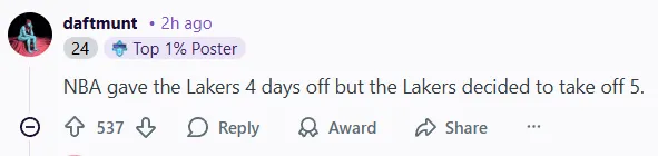 -(537贊)NBA給湖人放了4天假,但湖人決定放5天假。