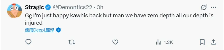 -gg,我只是很高興卡哇伊回來(lái)了,但天啊,我們陣容深度為零,所有替補都受傷了