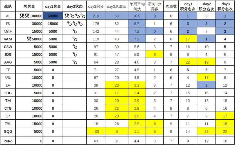 單日最高獎金AL:冠軍獎金45000?吃雞獎金15000共60000,FS吃雞獎金也為15000,