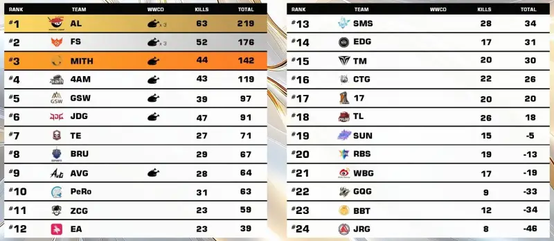 APAC 6支戰隊,3隊7雞??!AL、FS均3雞??!除了EA,積分均在前8!共拿下今日總獎金的80%??!