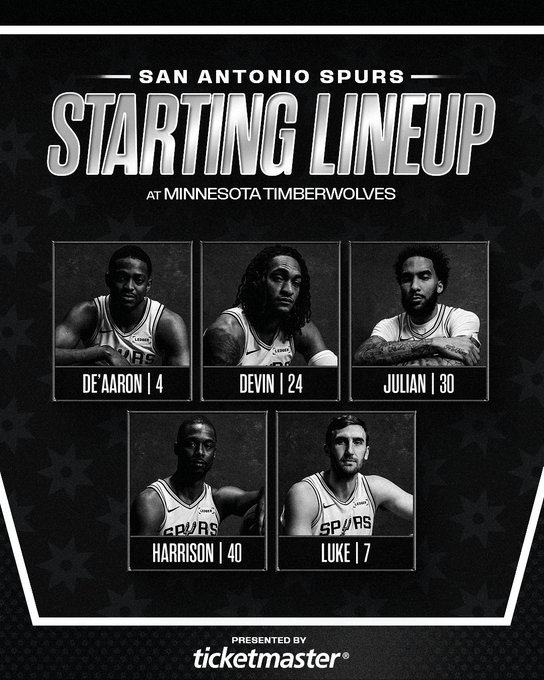 賽前,斯科馬刺官方曬出今日的首發(fā)陣容: