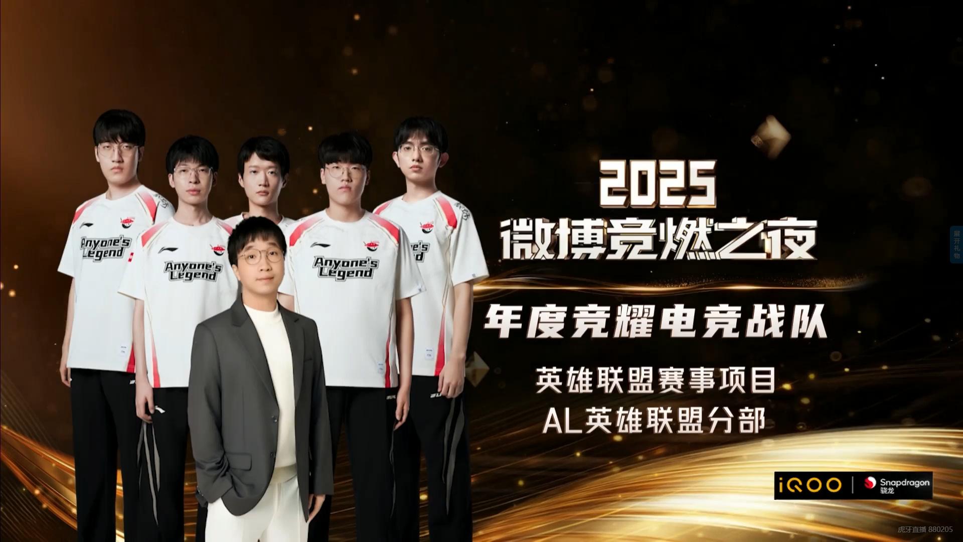 在2025微博競燃之夜的得年度競隊全舞臺上,AL英雄聯(lián)盟獲得“年度競耀電競戰隊”獎項!耀電