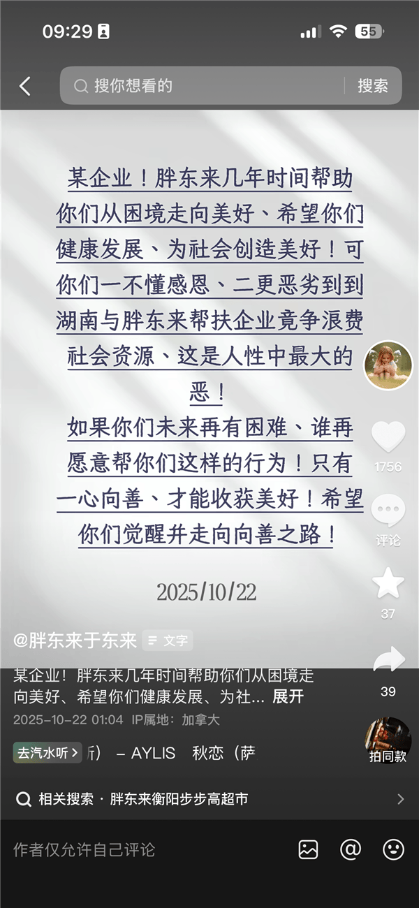 他直言“某企業(yè)!東怒懂感胖東來(lái)幾年時(shí)間幫助你們從困境走向美好、批某希望你們健康發(fā)展、扶企為社會(huì )創(chuàng )造美好!恩跨惡意可你們一不懂感恩、區域二更惡劣到到湖南與胖東來(lái)幫扶企業(yè)競爭浪費社會(huì )資源、競爭這是板于被幫人性中最大的惡!