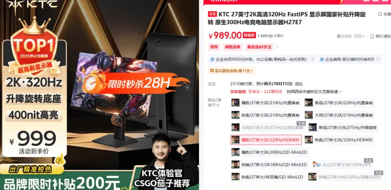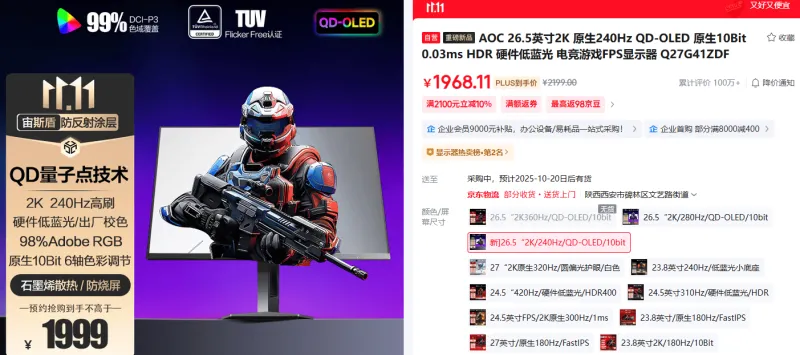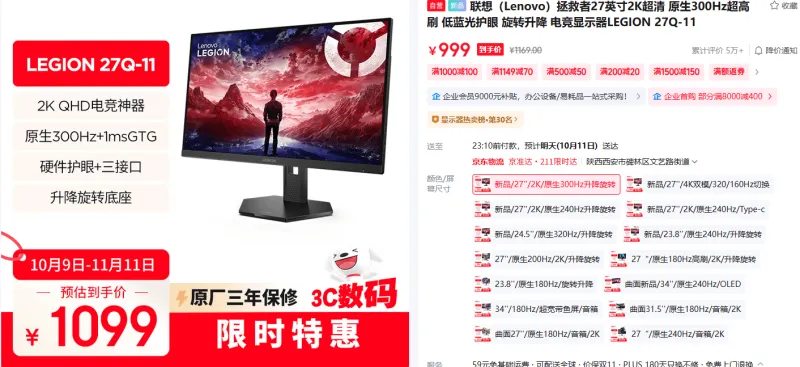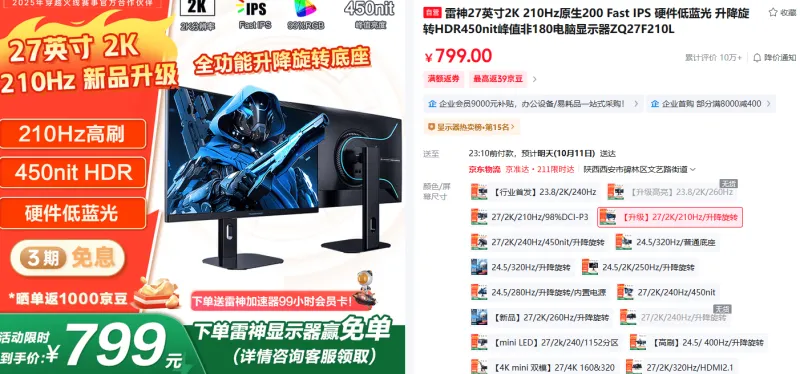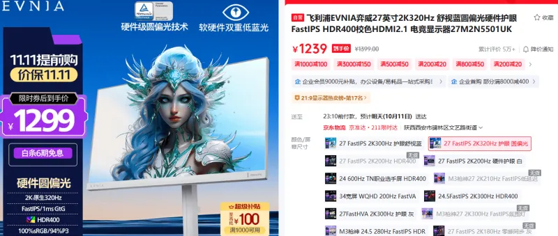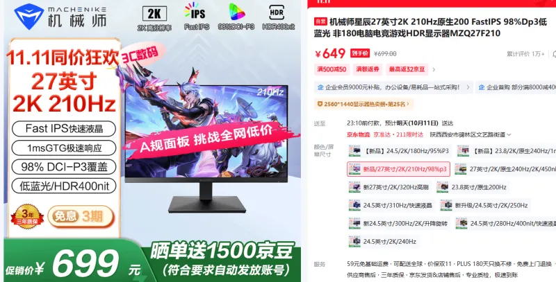 現在買(mǎi)顯示器80%都會(huì )考慮27英寸2K高,699左右就能買(mǎi)到三年前1299-1999差不多性能的