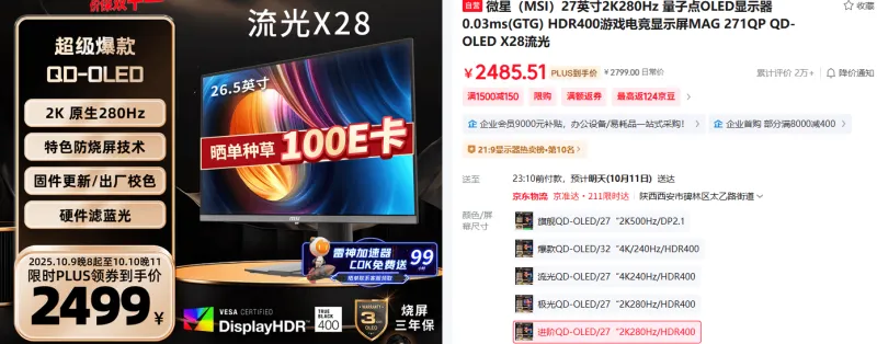 前2款,27英寸2K280Hz 適合主玩FPS網(wǎng)游為主 專(zhuān)精FPS,也可作為玩FPS的副屏使用。