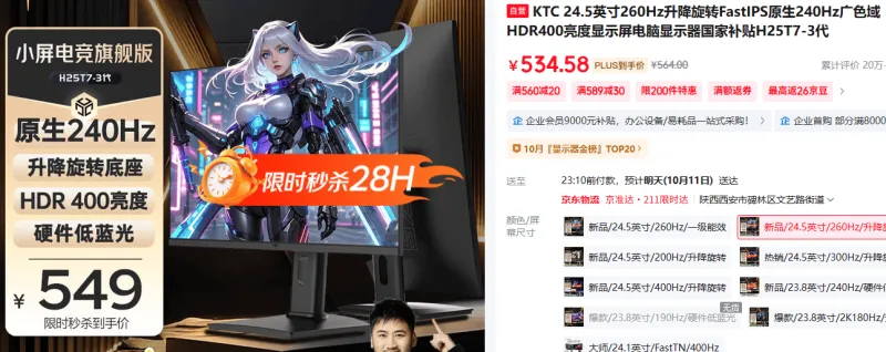 第2款KTC大概率是卡搭華星光電面板SG245HB04-3,原生240Hz超頻260Hz