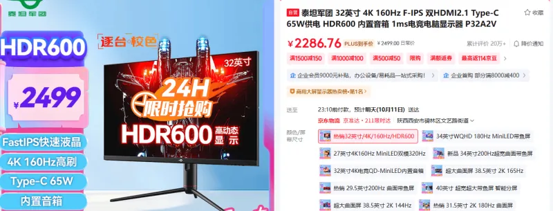 32英寸4K高刷顯示器的選擇很少,2000以?xún)葍r(jià)位選擇就更少了