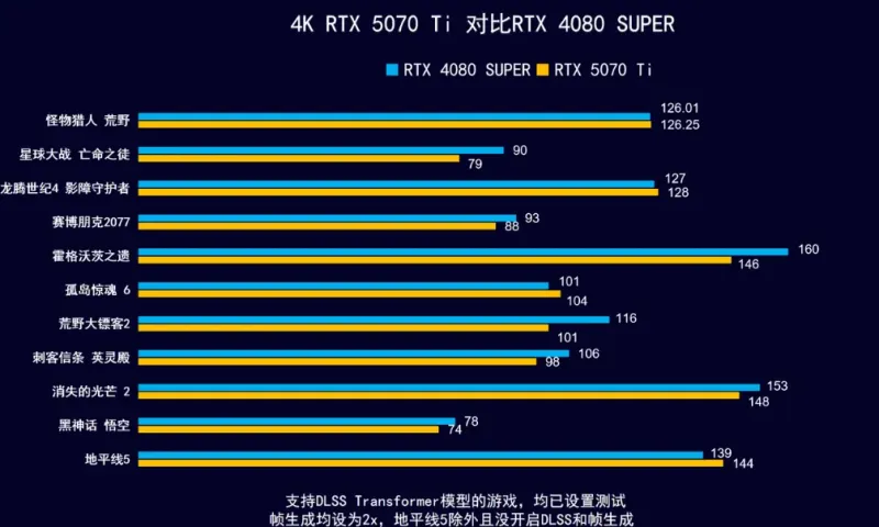 開(kāi)啟DLSS 4,游戲領(lǐng)先4080SUPER 80%左右