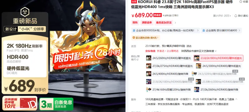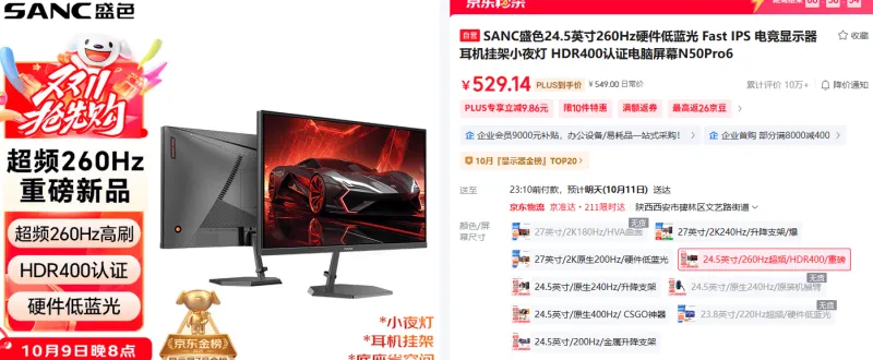 第1款SANC?大概率是京東方面板MV238FHB-NF5,原生240Hz,游戲性能在同價(jià)位第一梯隊。