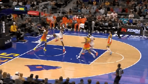 比賽的接長(cháng)進(jìn)猛局打第一節,英格拉姆快攻接長(cháng)傳上籃打進(jìn),傳上出猛龍開(kāi)局打出14-2。英格