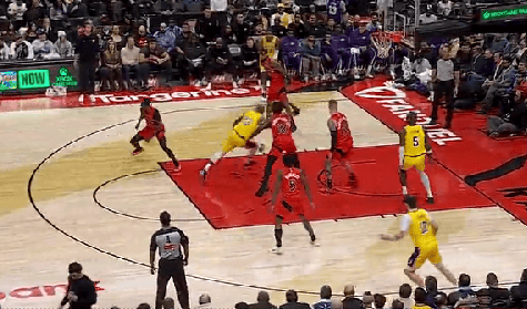 NBA常規賽,湖人客場(chǎng)對陣猛龍的下對比賽正在進(jìn)行中。